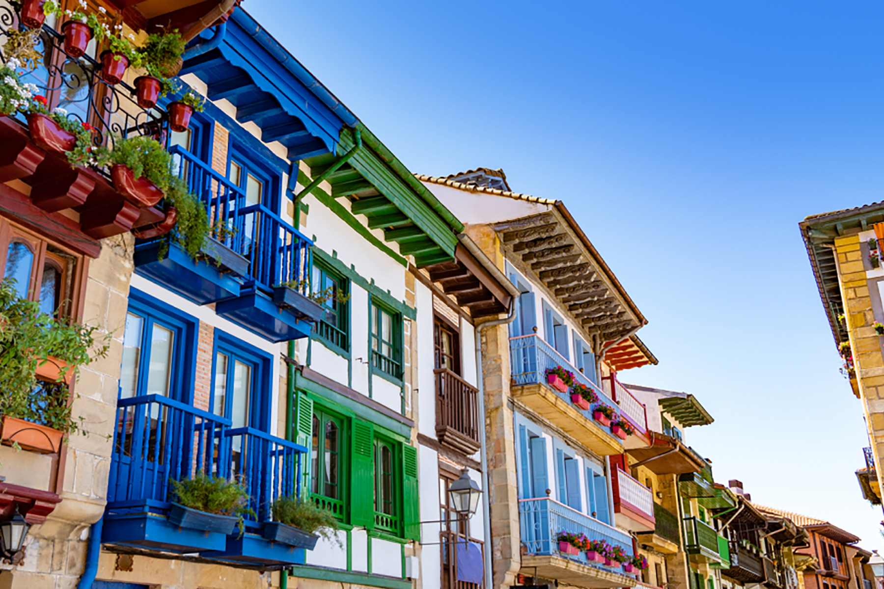 旧市街は、石畳の街並みが中世の姿を今に残すバスクの古都です。木組みの家々には赤や緑のバルコニーが並び、歴史と暮らしが息づいています!坂道を登れば海と山を望む景色が広がり、路地ではバル文化と人々の会話が自然に溶け合います!